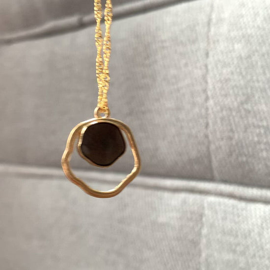 Yellow gold plated 18" curb chain necklace with a 'Jelly & Gold' pendant (wavy gold hoop with coloured stone)